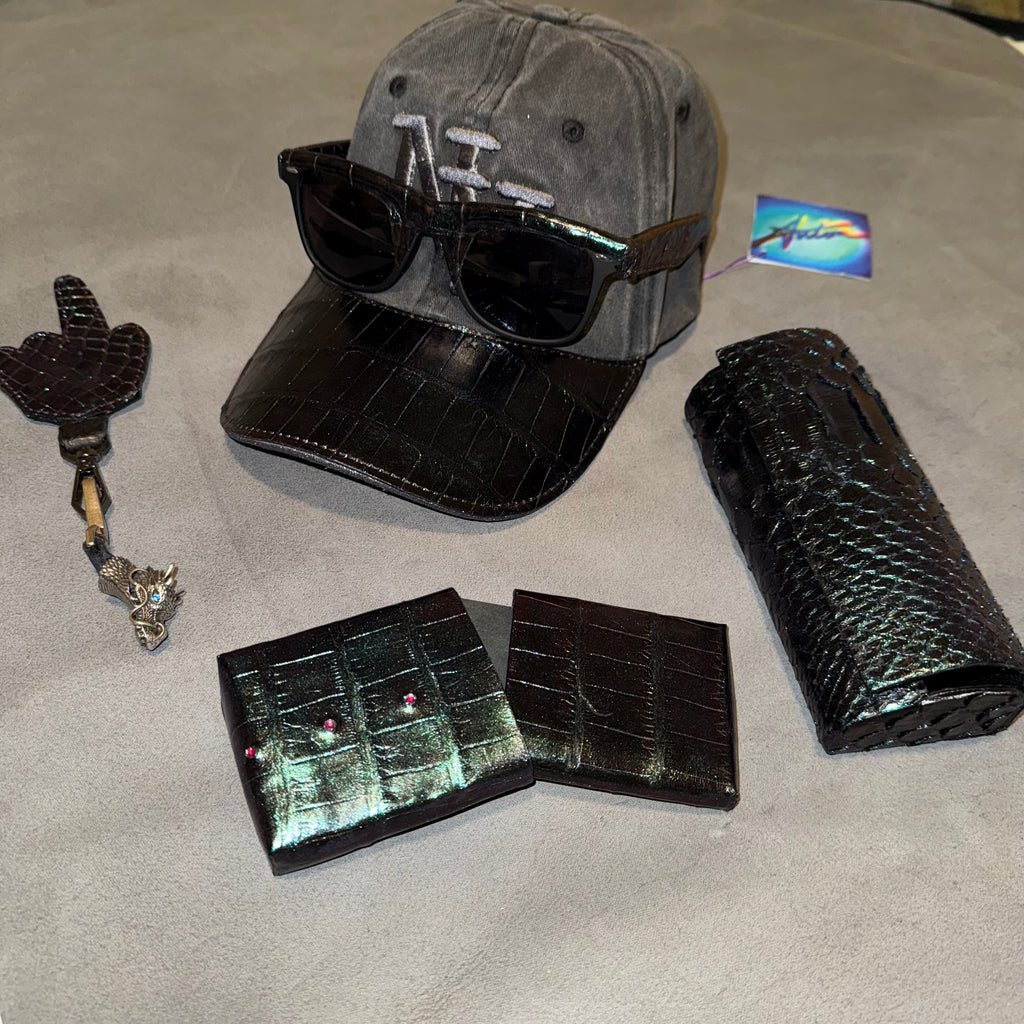 Designer Anton our mission is to empower individuals to express their personal style through distinctive pieces.Offerings include exclusive items such eyewear, wallets/card holders,caps ,keychains bracelets all featuring luxurious genuine Alligator and python textures and bold ruby accents, appealing to those who appreciate both elegance and innovation.