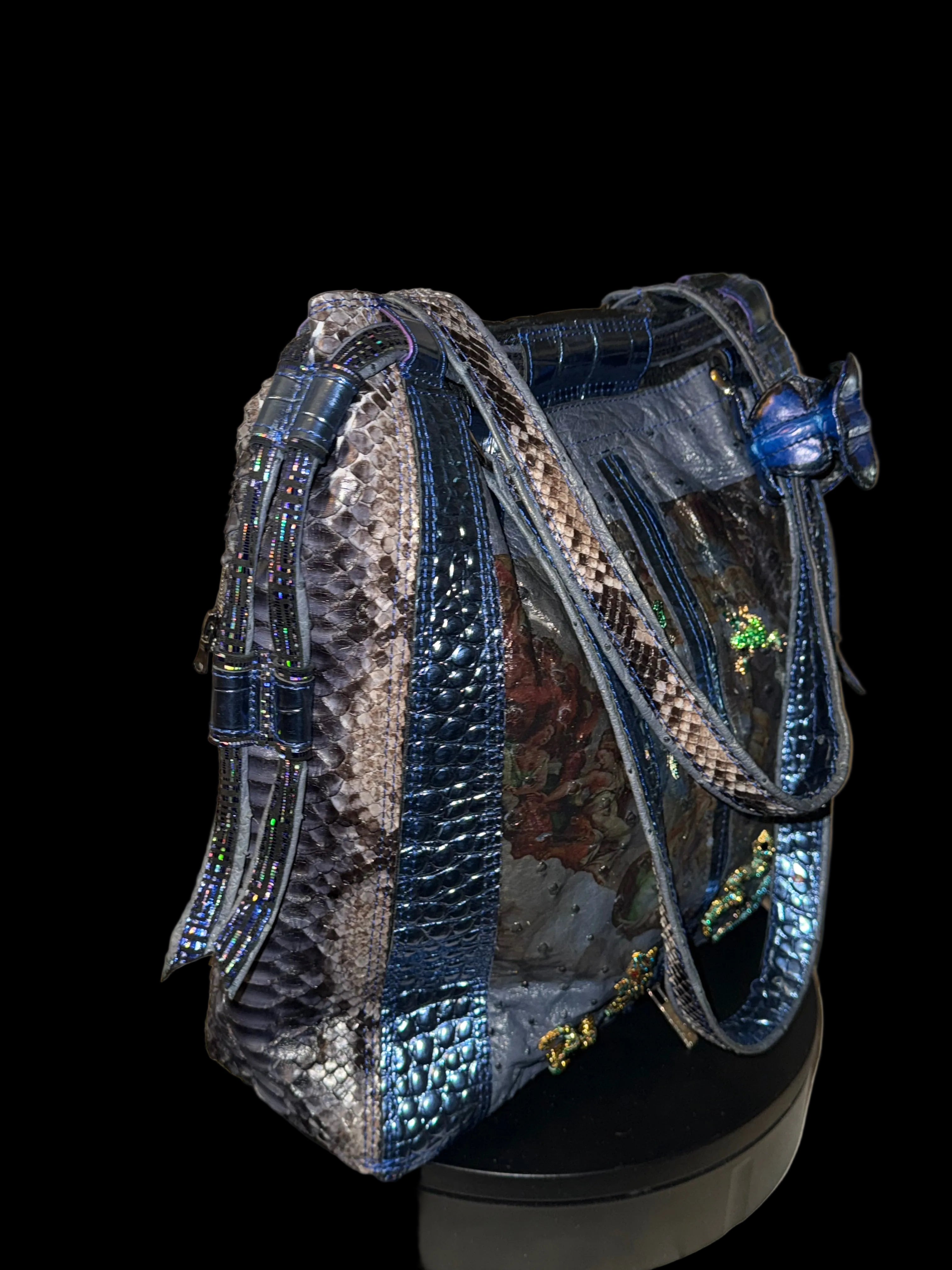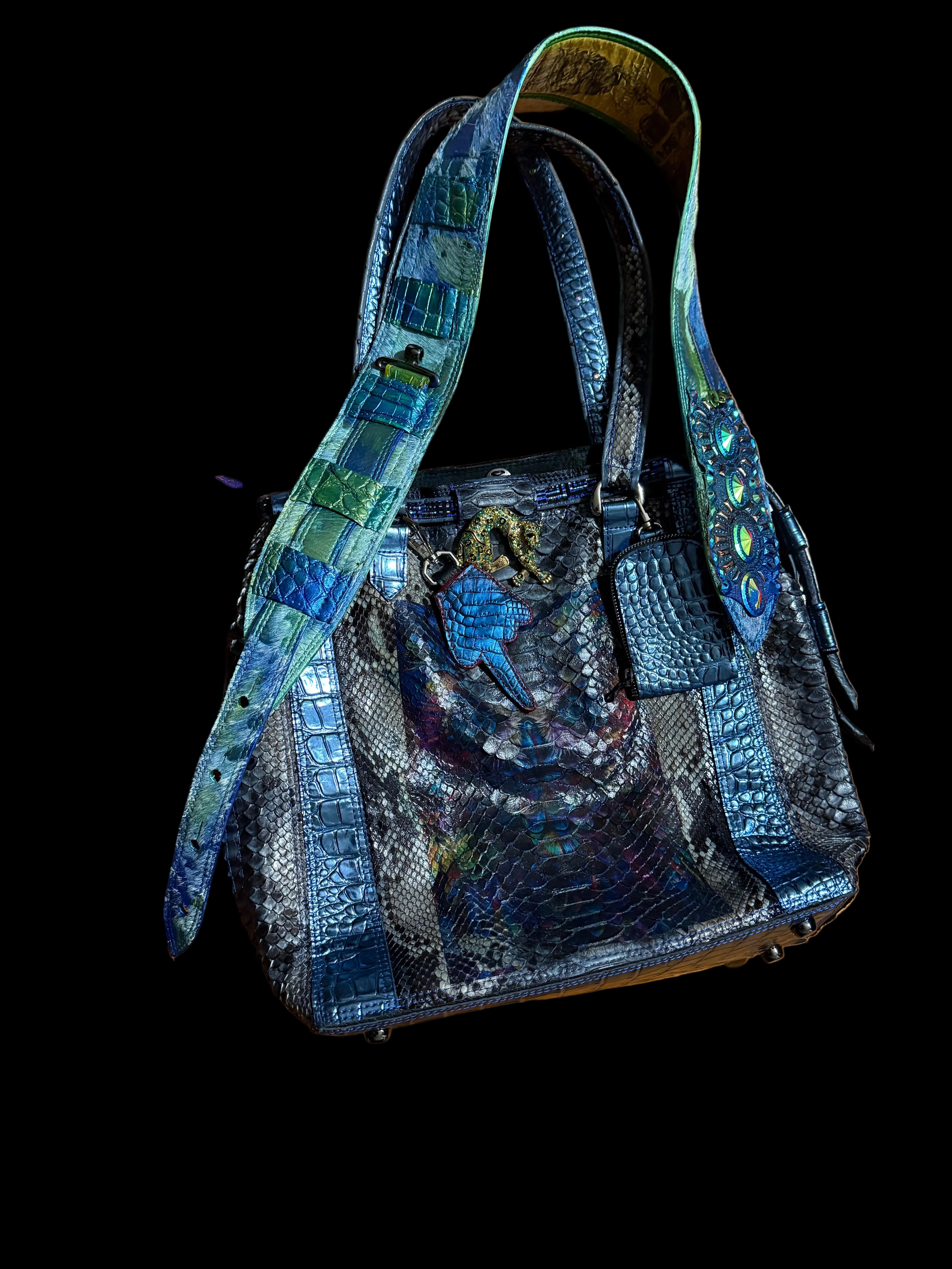 This bag is ideal for fashion lovers who appreciate limited designs and artisanal craftsmanship. Whether paired with minimalist outfits or bold ensembles, they elevate any look with ease. Tattooed blue python tote bag is more than an accessory it’s a statement of individuality, luxury, and fearless style.