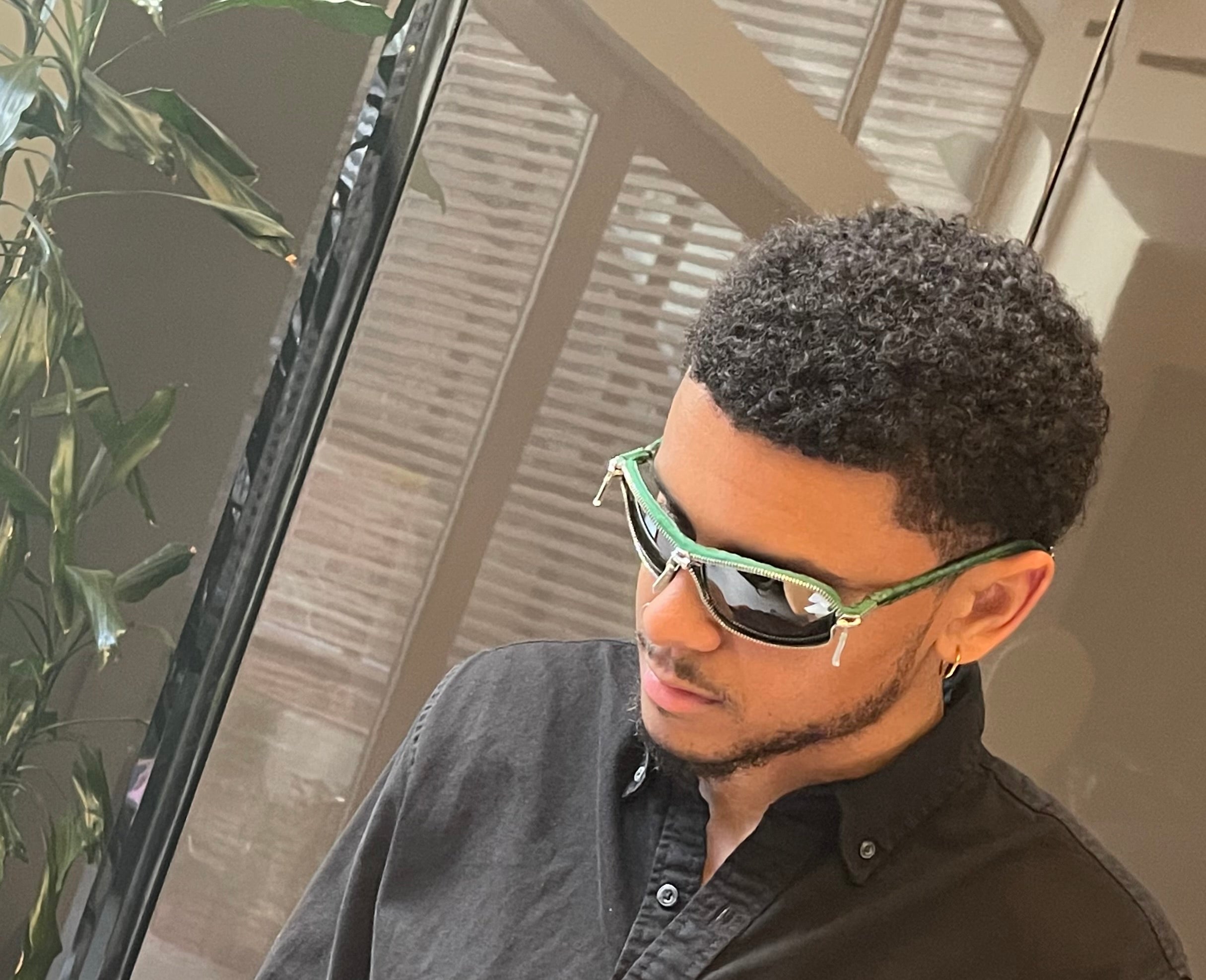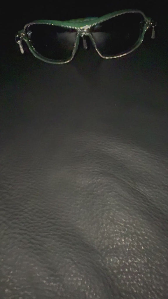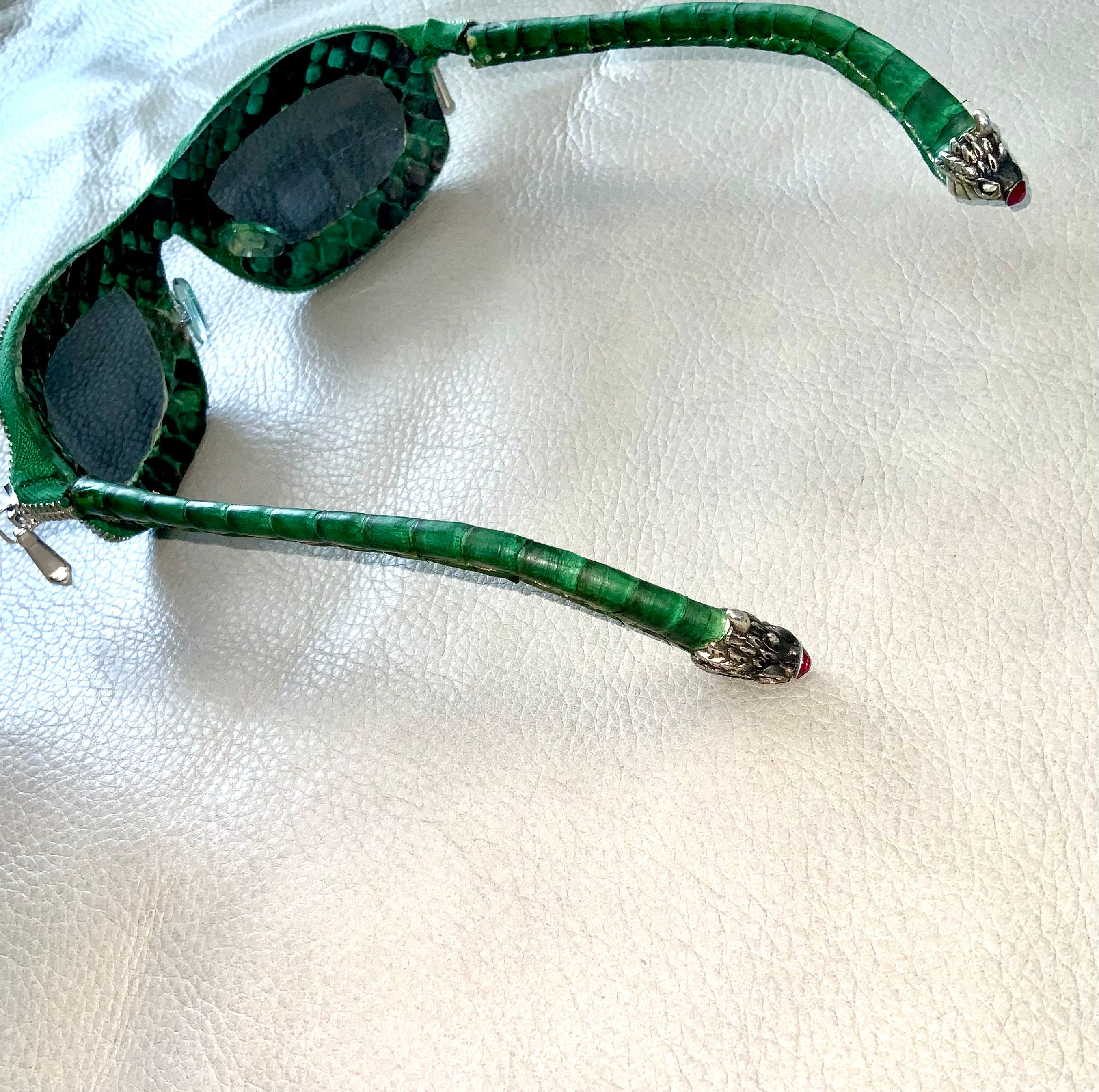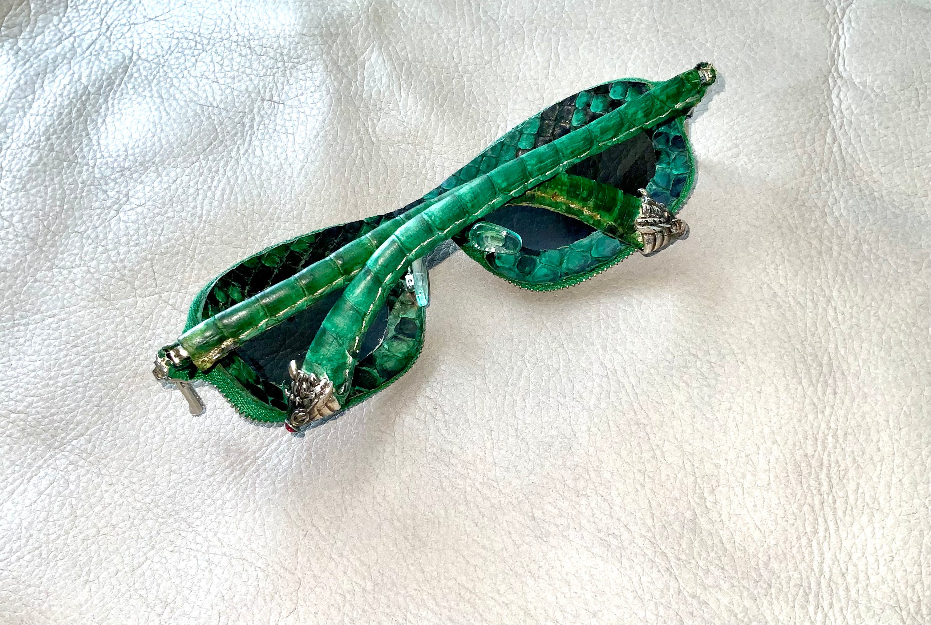 Green is the color this eye catching genuine python with zipper details and ruby tips Ray Ban customs are made in NYC ships worldwide