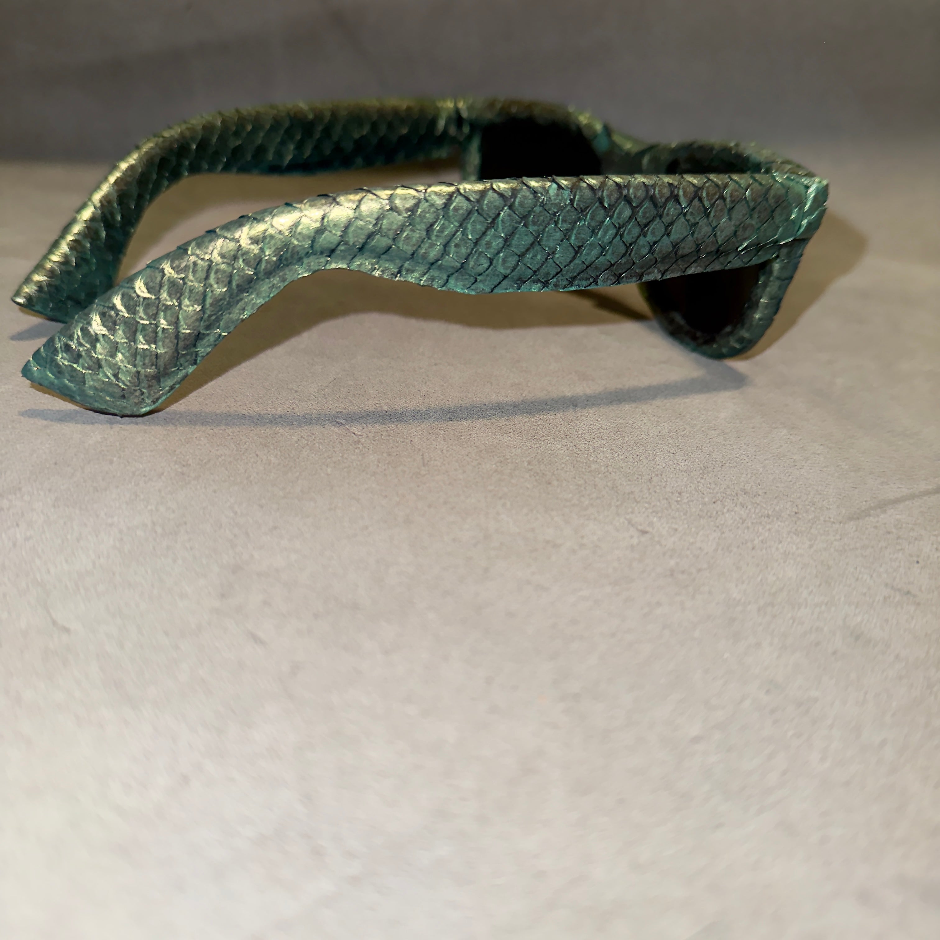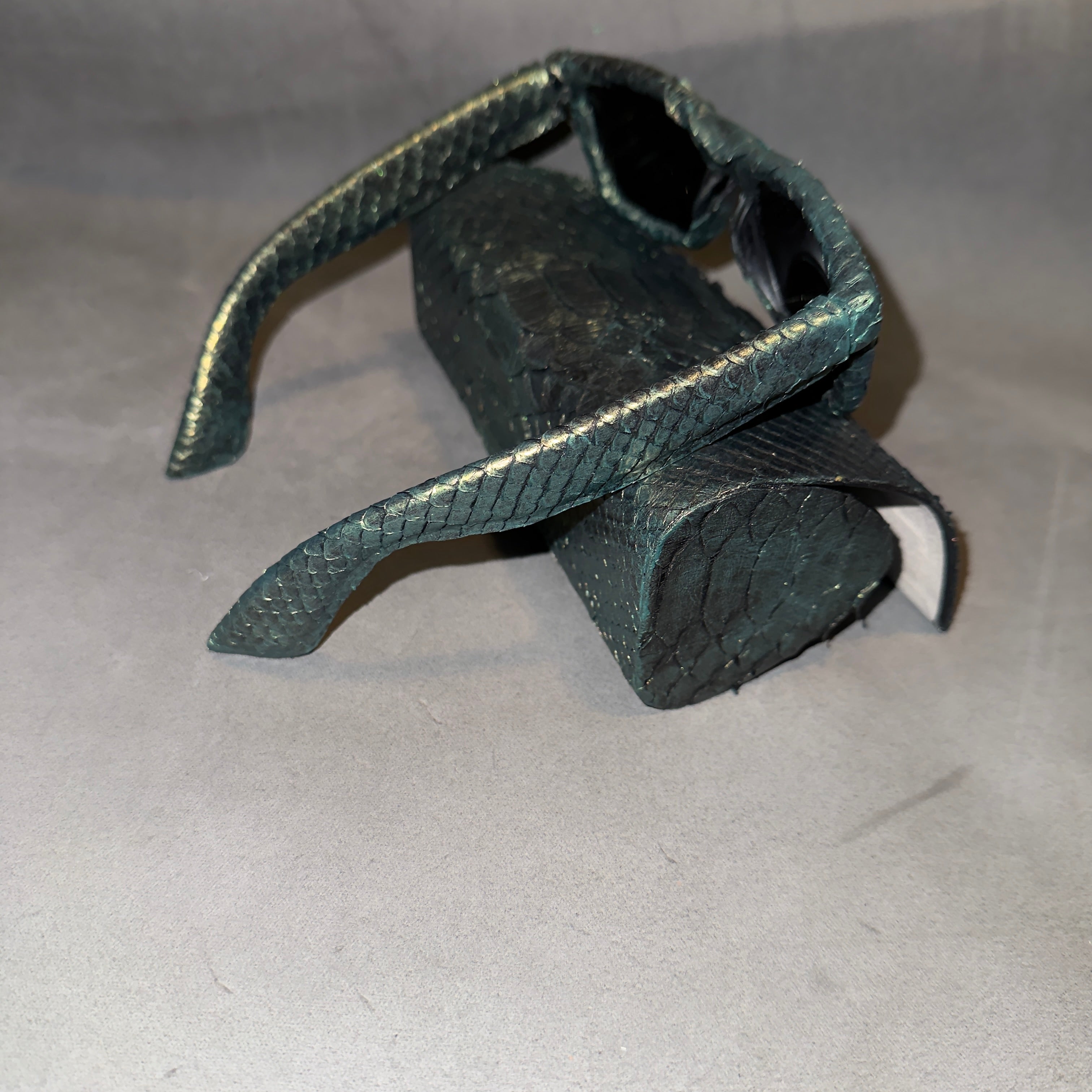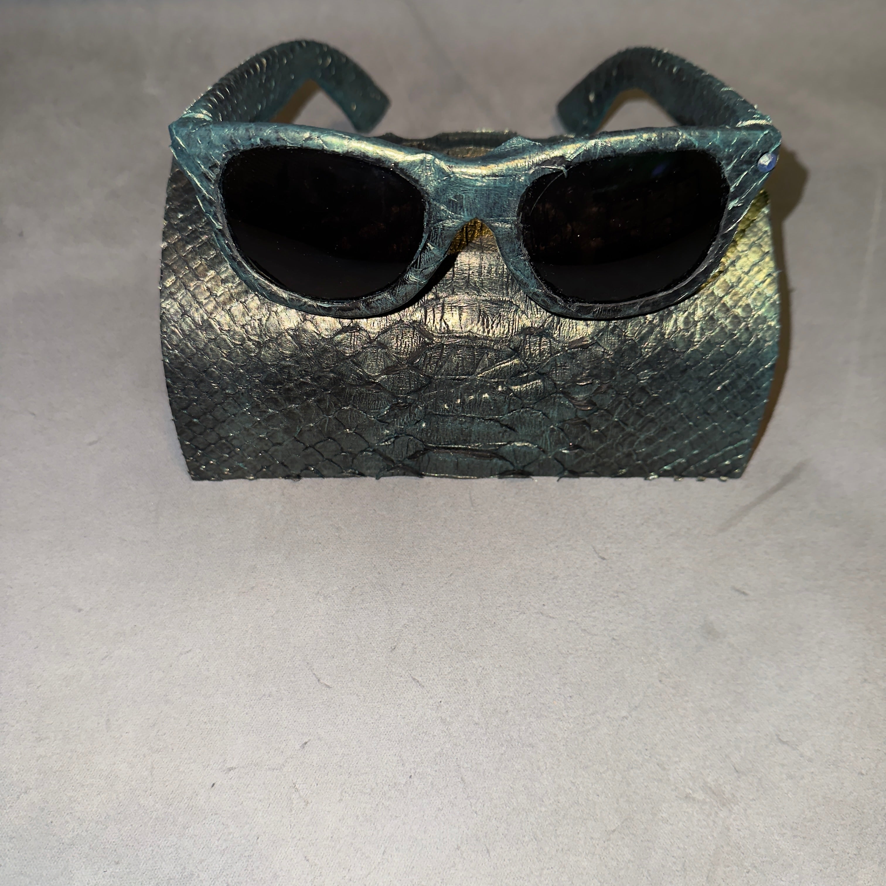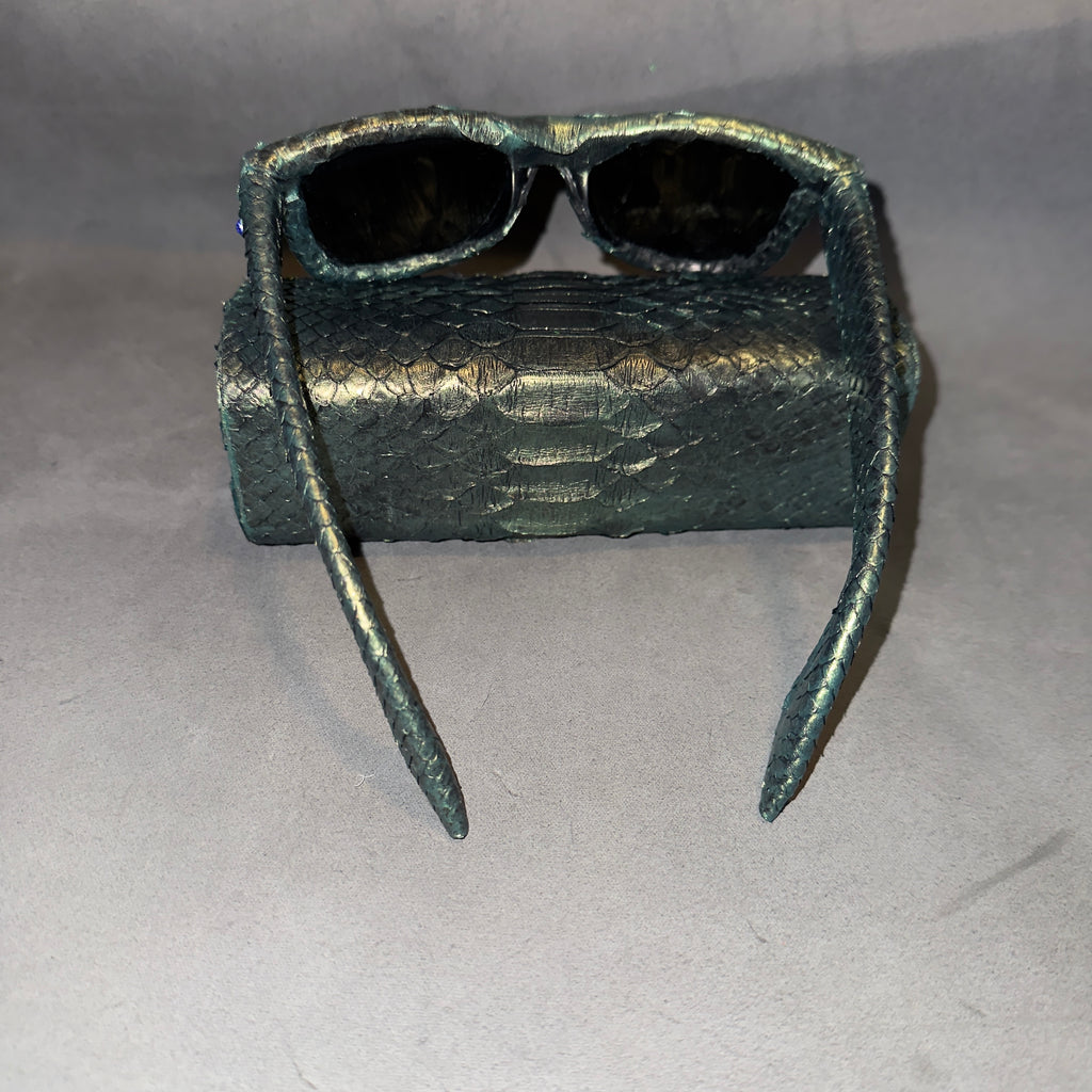 Step into the wild side with Green Gold sunglasses! The only genuine python frames on the planet add a touch of pure unmatched luxury to the wayfarer style, while the elegant python case adds to the exotic feel. Features also include glass lens and UV protection water and weather resistant these sunglasses are made in NY ship worldwide. Take on the world with this unmistakably stylish and bold accessory!