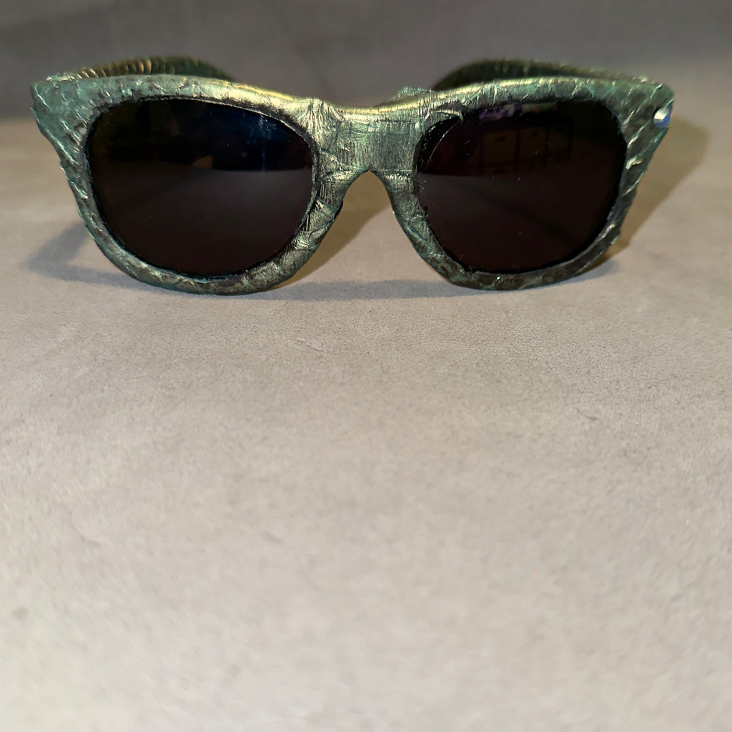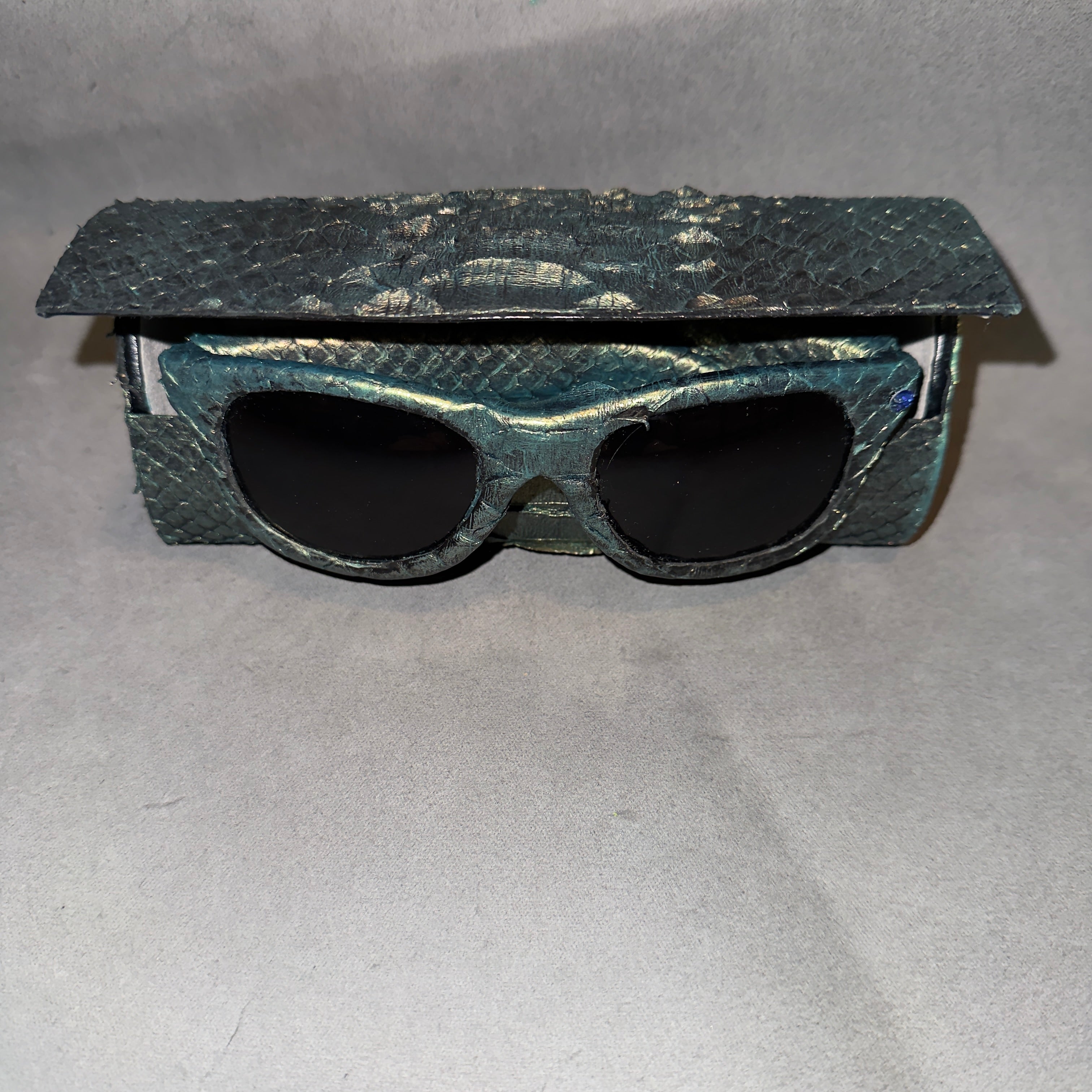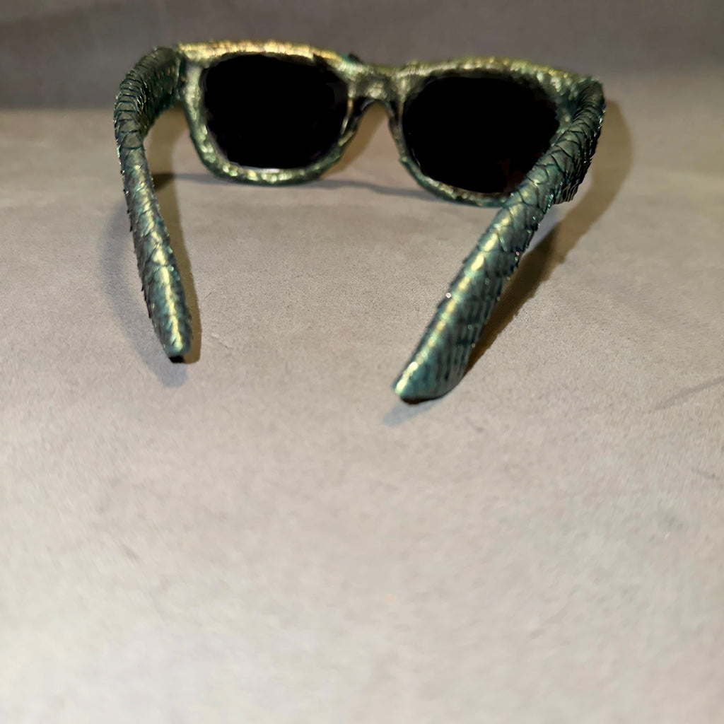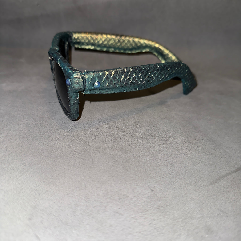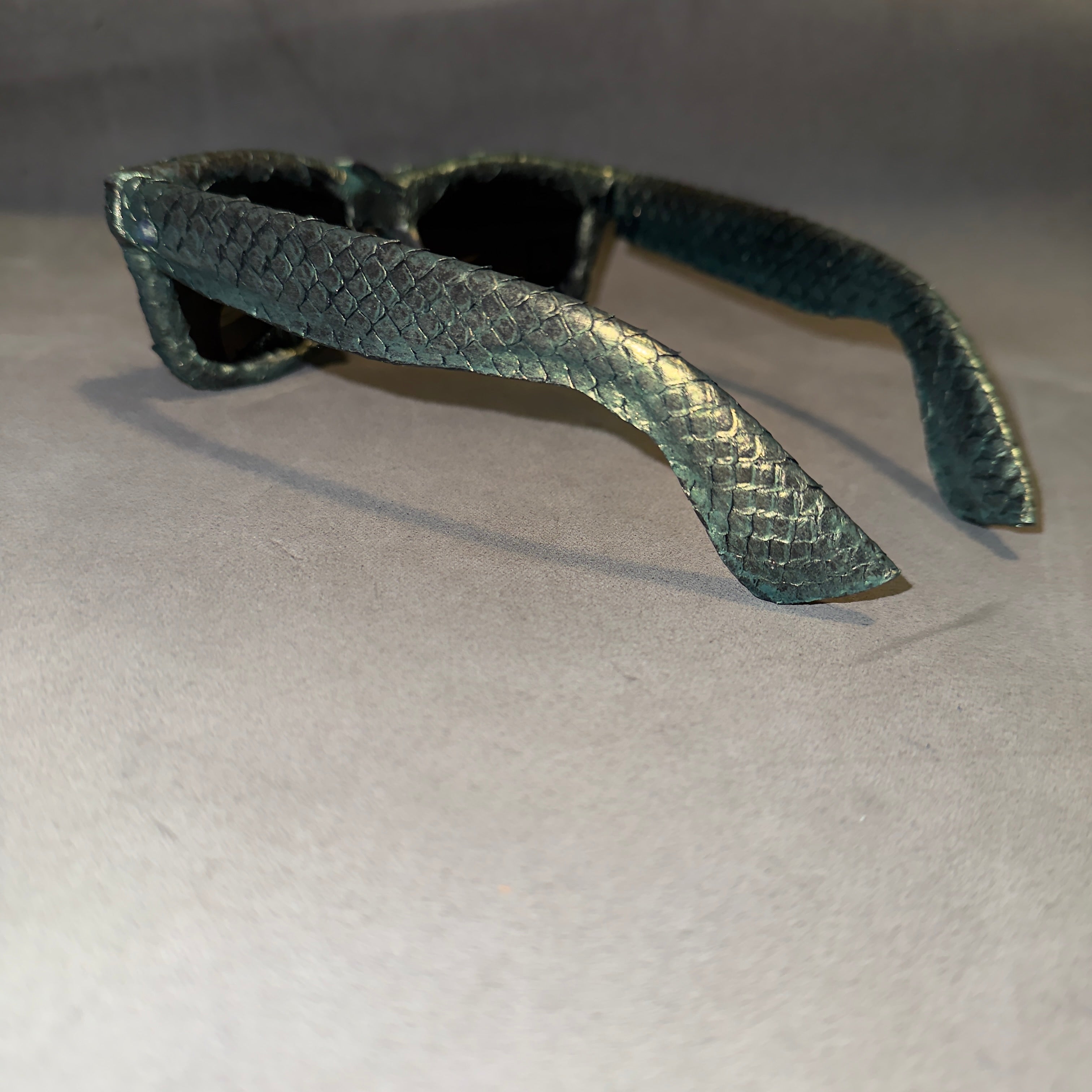 Step into the wild side with Green Gold sunglasses! The only genuine python frames on the planet add a touch of pure unmatched luxury to the wayfarer style, while the elegant python case adds to the exotic feel. Features also include glass lens and UV protection water and weather resistant these sunglasses are made in NY ship worldwide. Take on the world with this unmistakably stylish and bold accessory!