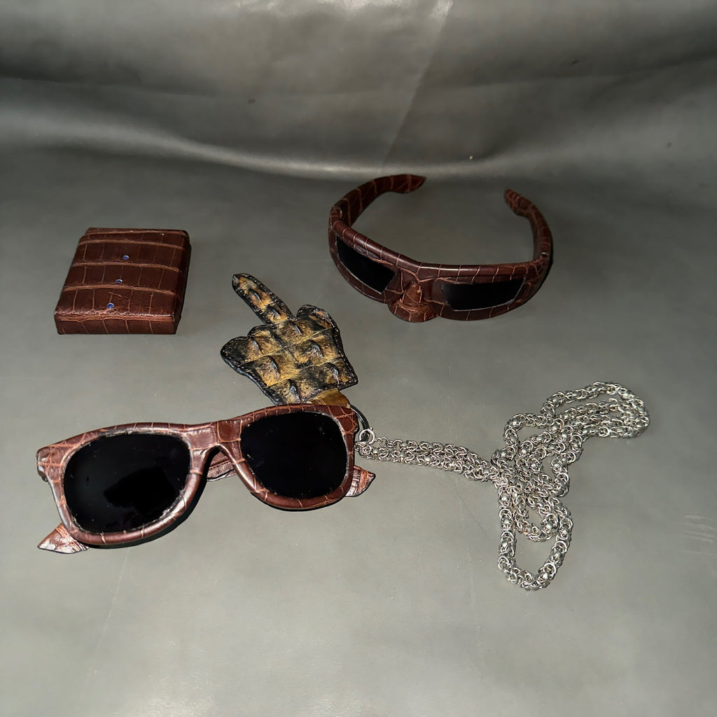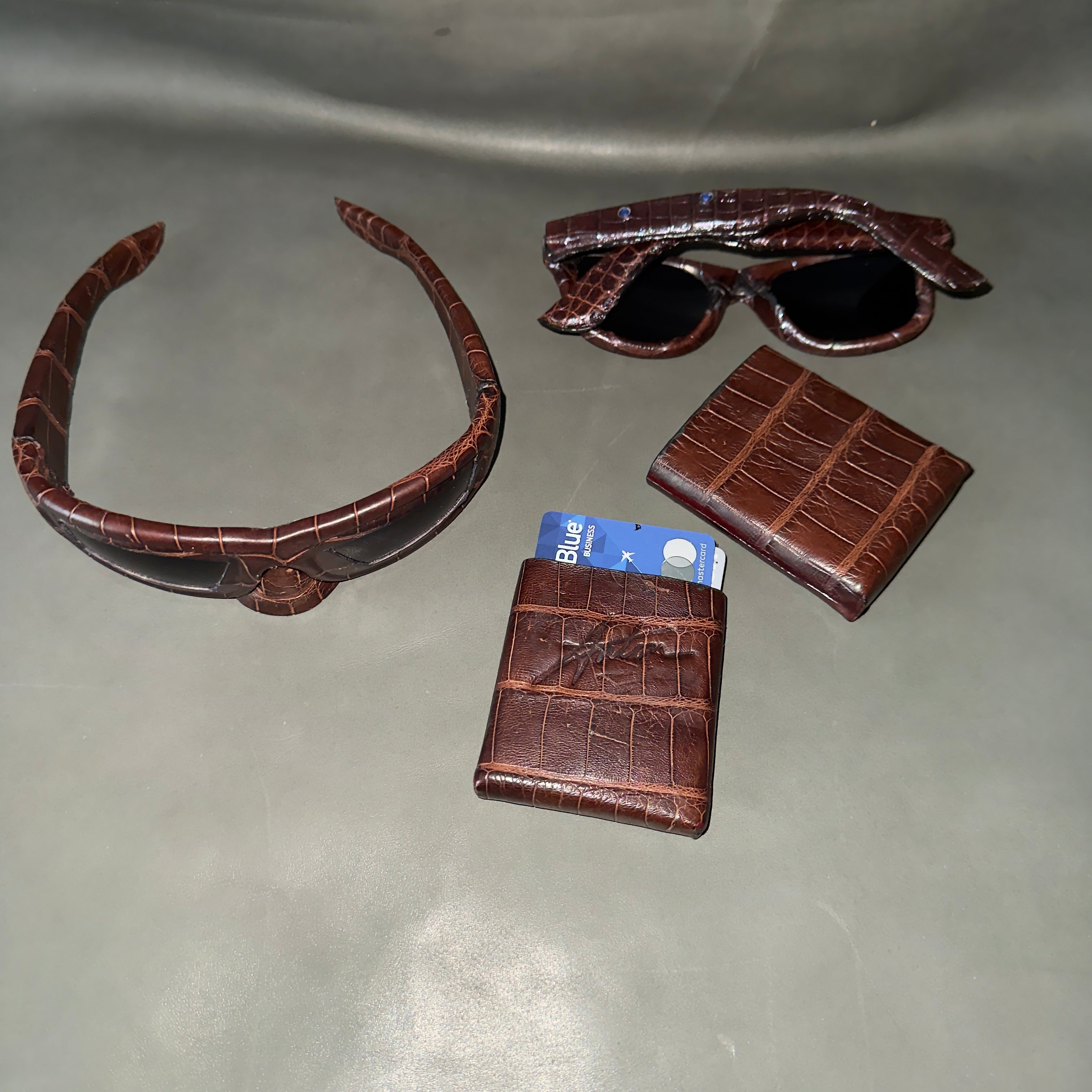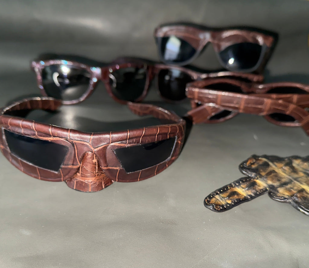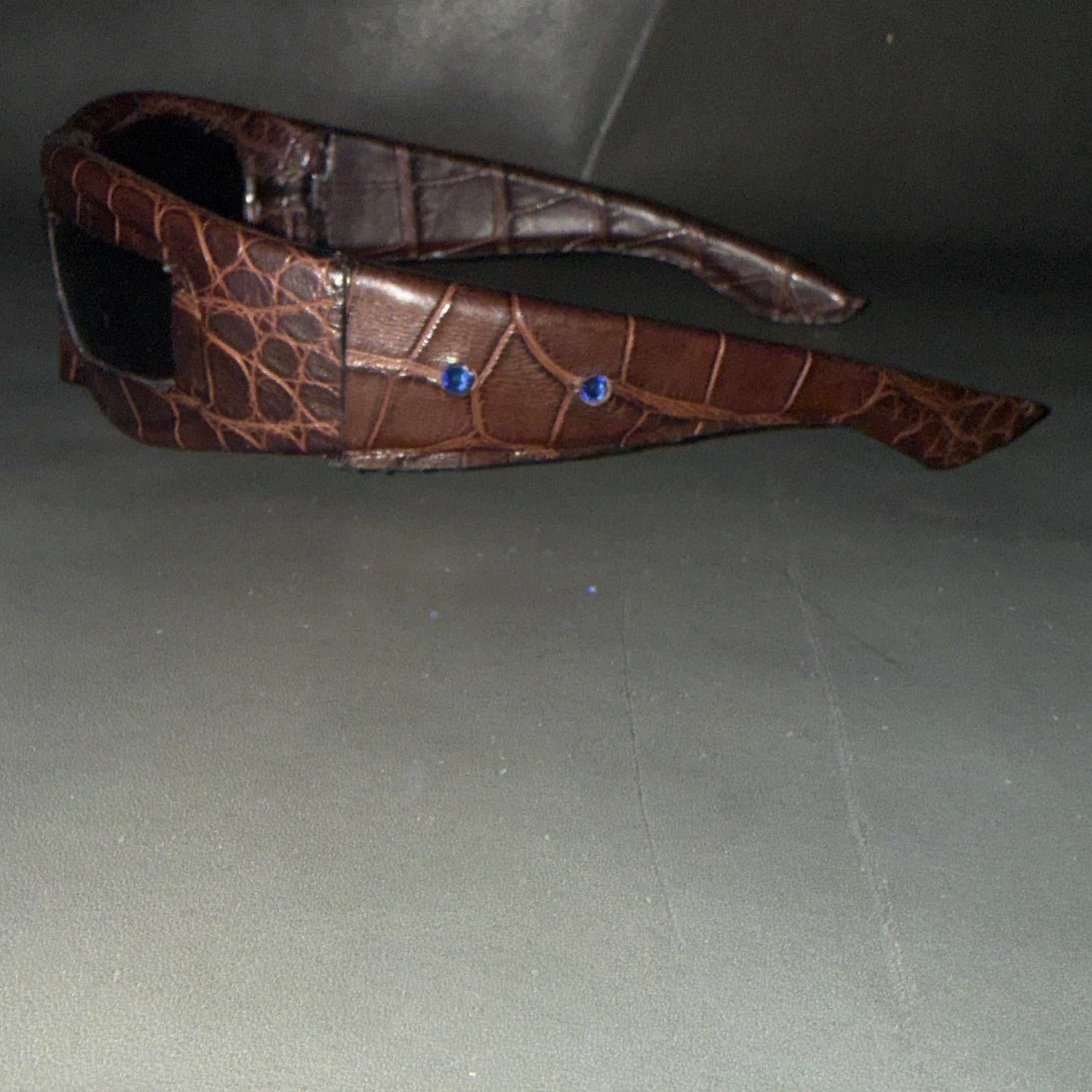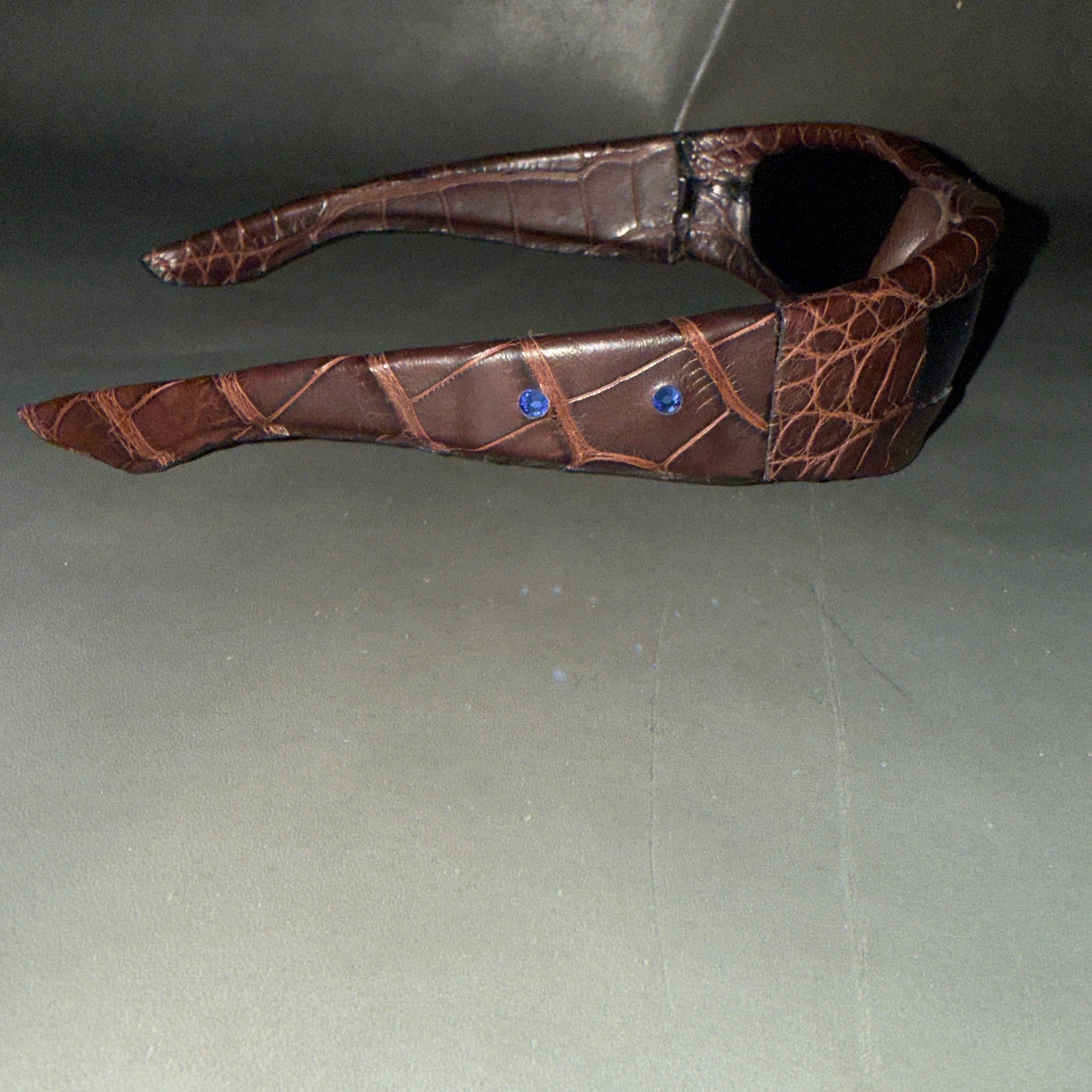 Introducing Gregors Gators - the epitome of style and elegance. The only exotic leather sunglasses hand crafted in NY, these eye-catching brown alligator pure luxury in look and feel these shades offer UV protection and wrap around styling with or without nose protection water and weather proof . Whether you're a superhero or villain, these sunglasses will stun all those who set eyes on you. Ships worldwide.