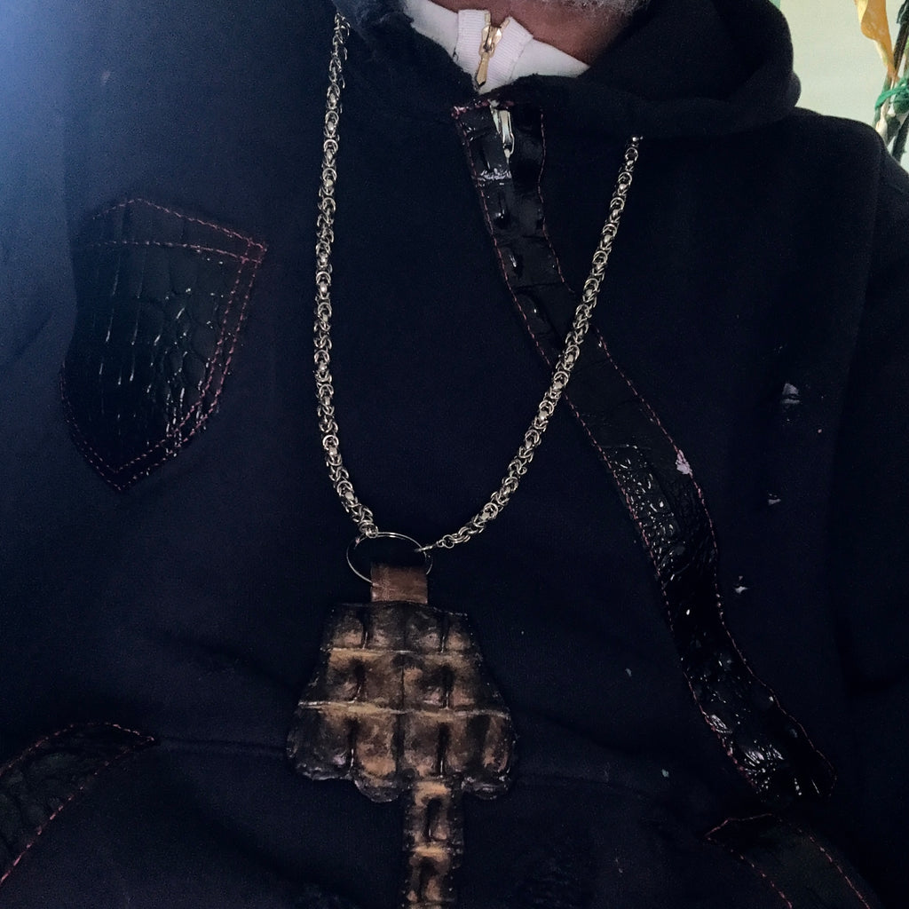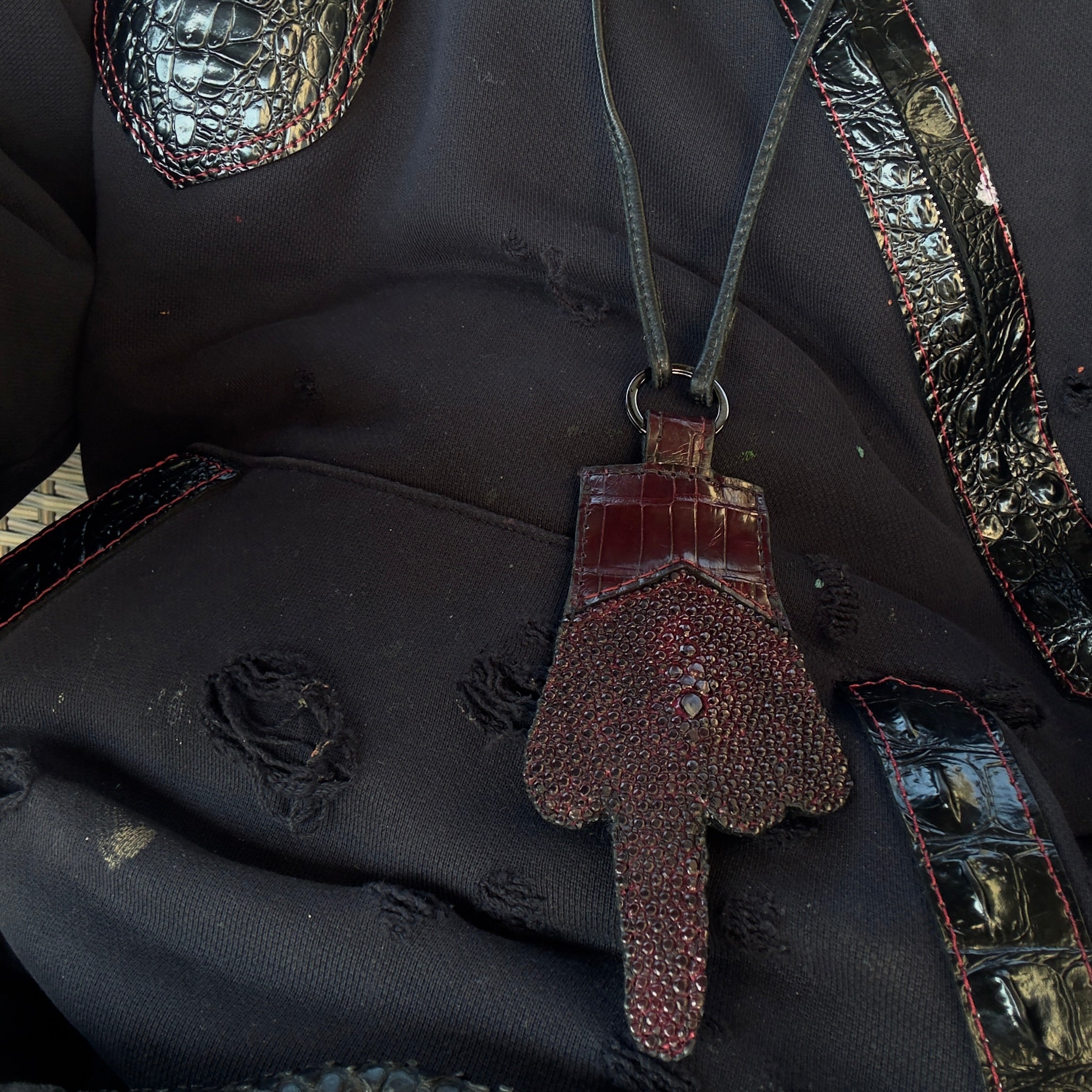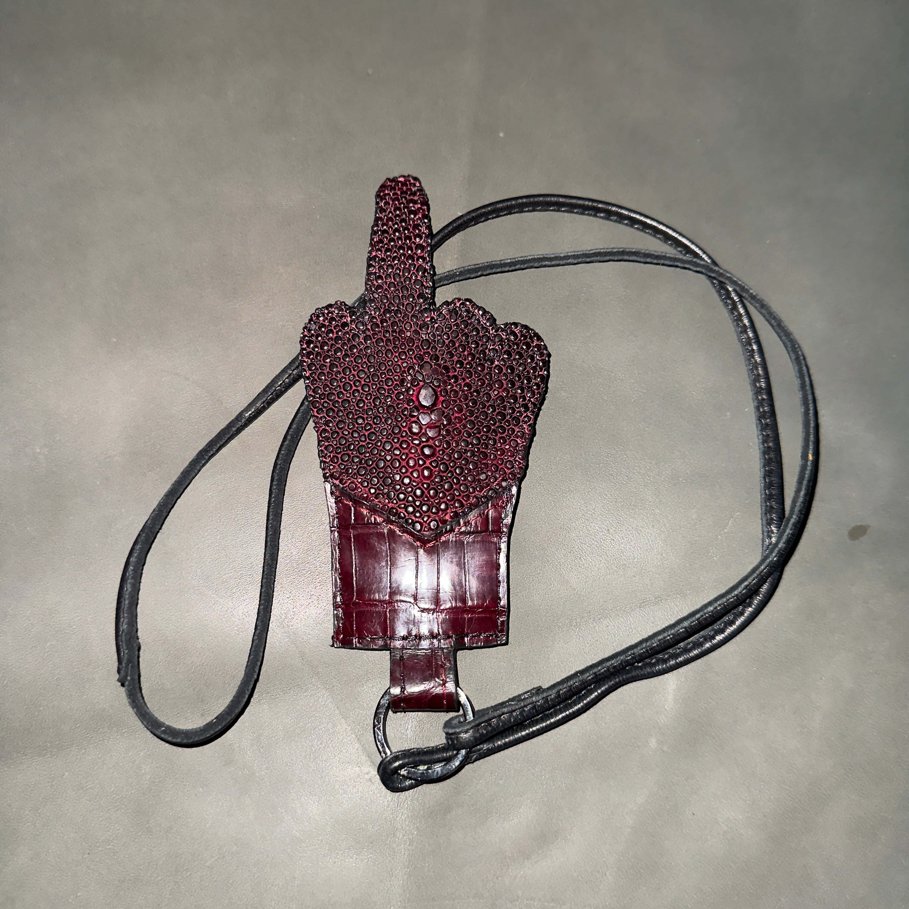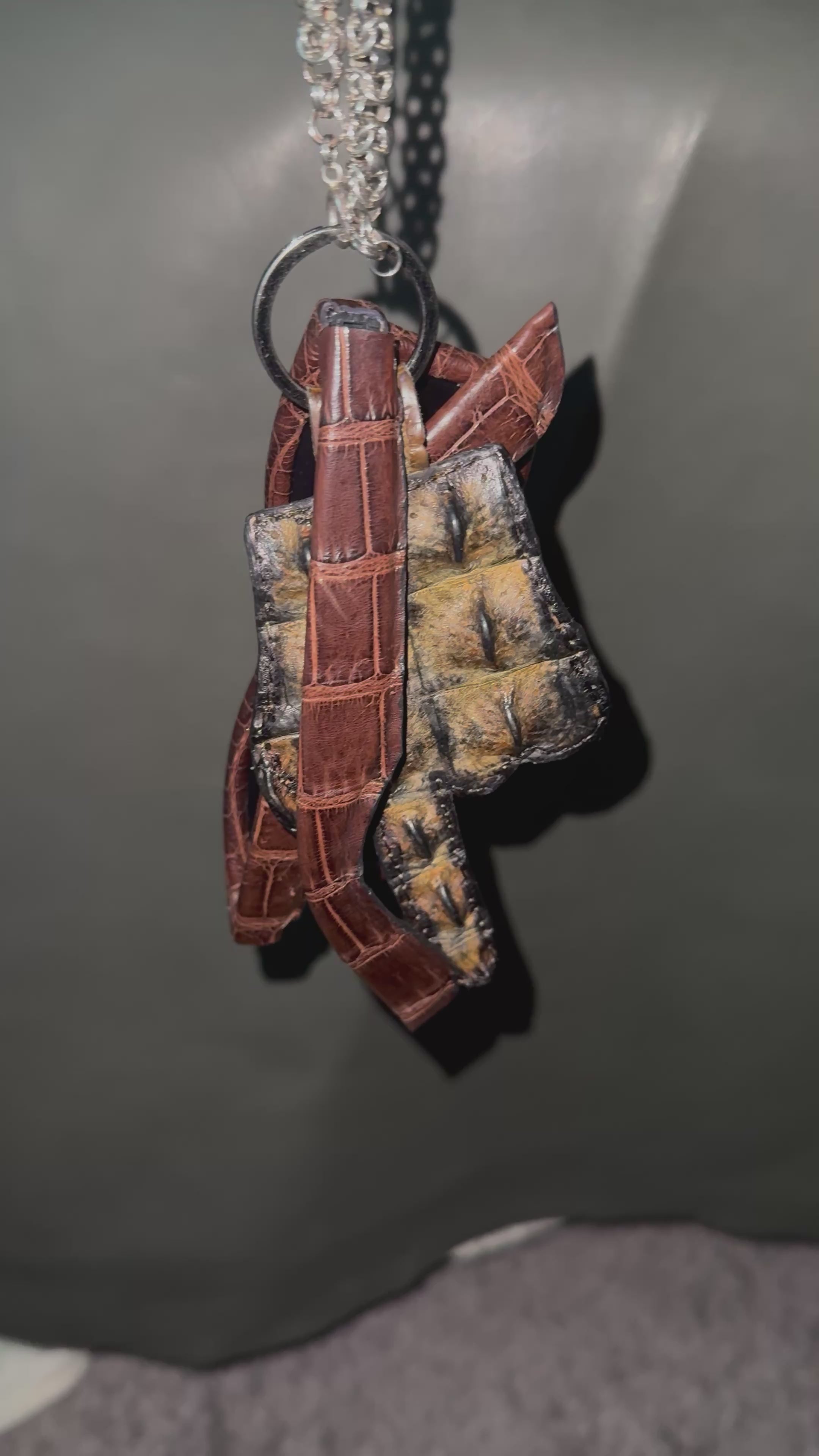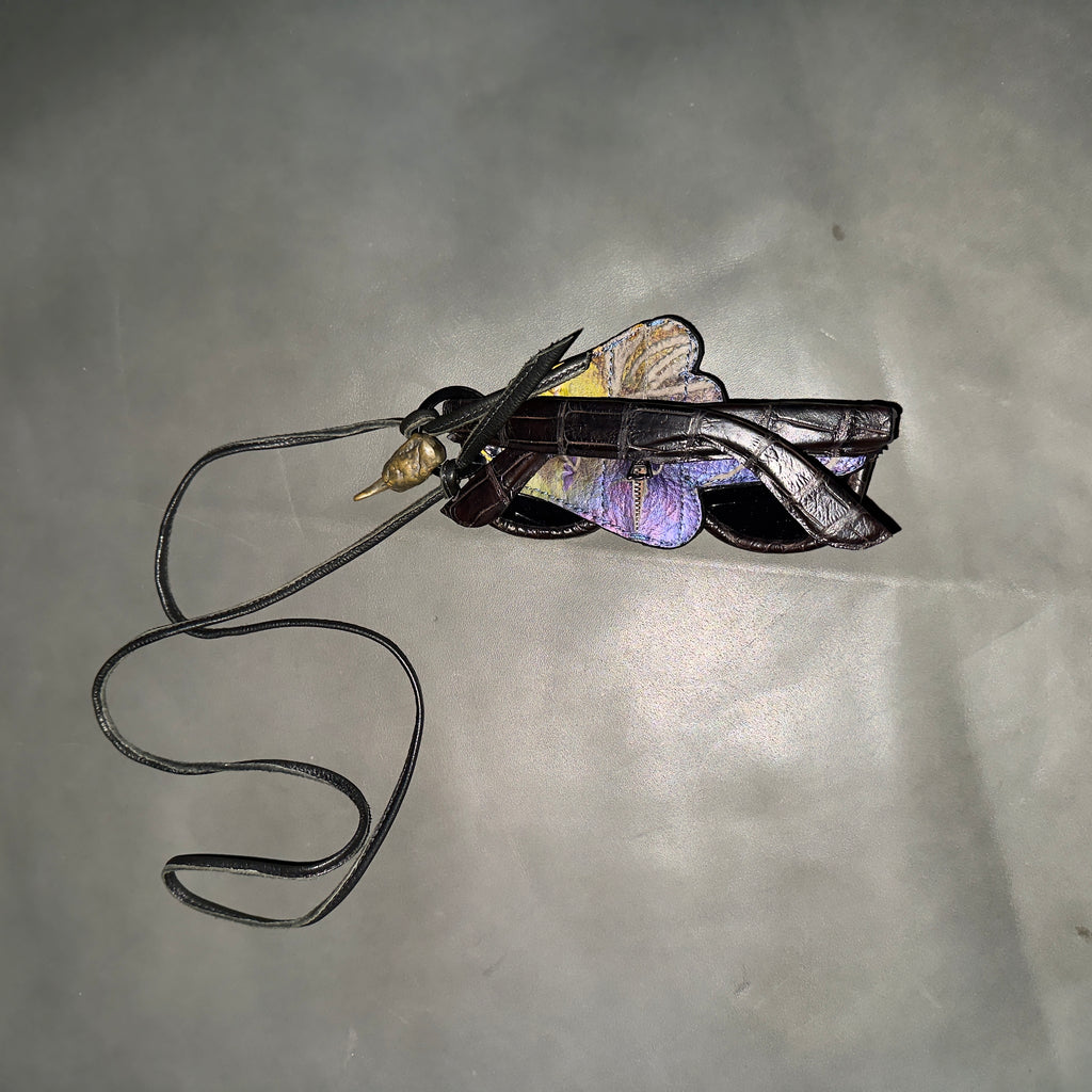 The sunglass necklace holder the best companion for our signature shades . These unique one of one MF Alligator and stingray designs can be worn as a necklace with or without the sunglasses a bold statement will be made each design also features a small pocket for air tags ,or whatever conveniently fits made in NY ships worldwide