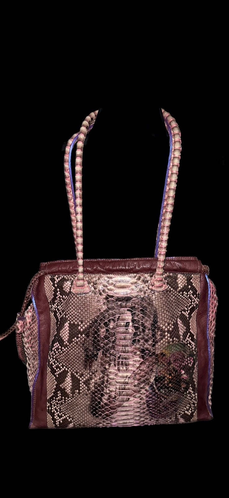 Bold, artistic, and unapologetically unique, this luxury tote bag is designed for individuals who see fashion as a form of self-expression. Tattooed pink python tote bag combines exotic materials with striking visual artistry, creating a statement accessory that stands out in any setting. Each piece reflects confidence, creativity, and modern luxury.